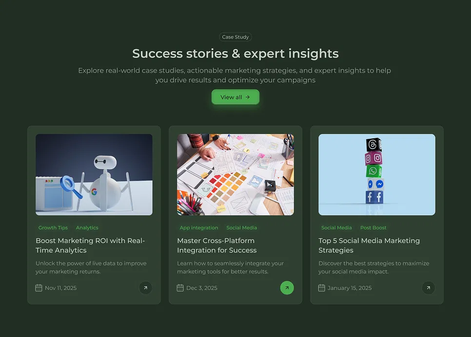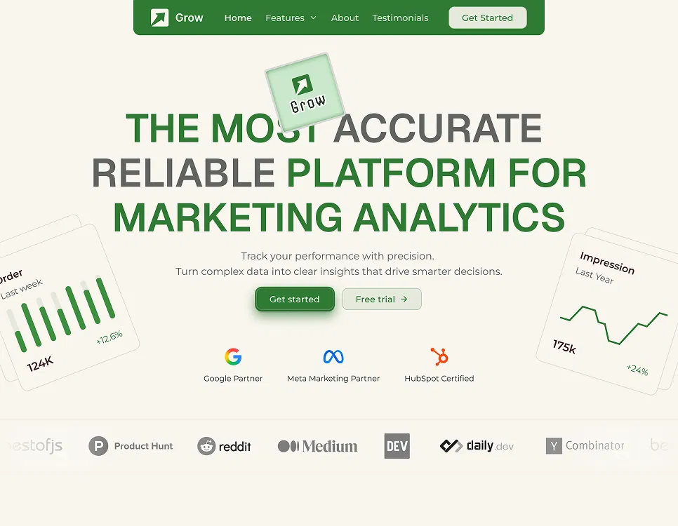 Grow represents a modern approach to marketing agency web presence where strategy, design, and conversion optimization intersect. The project demonstrates how thoughtful UX design and clear messaging can effectively communicate expertise and drive business growth through digital channels.